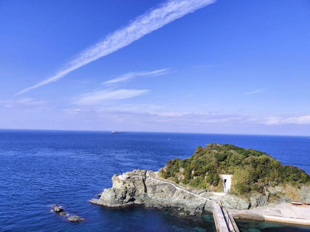 佐田岬半島の先端「御籠島」その向こうは14Km先の九州